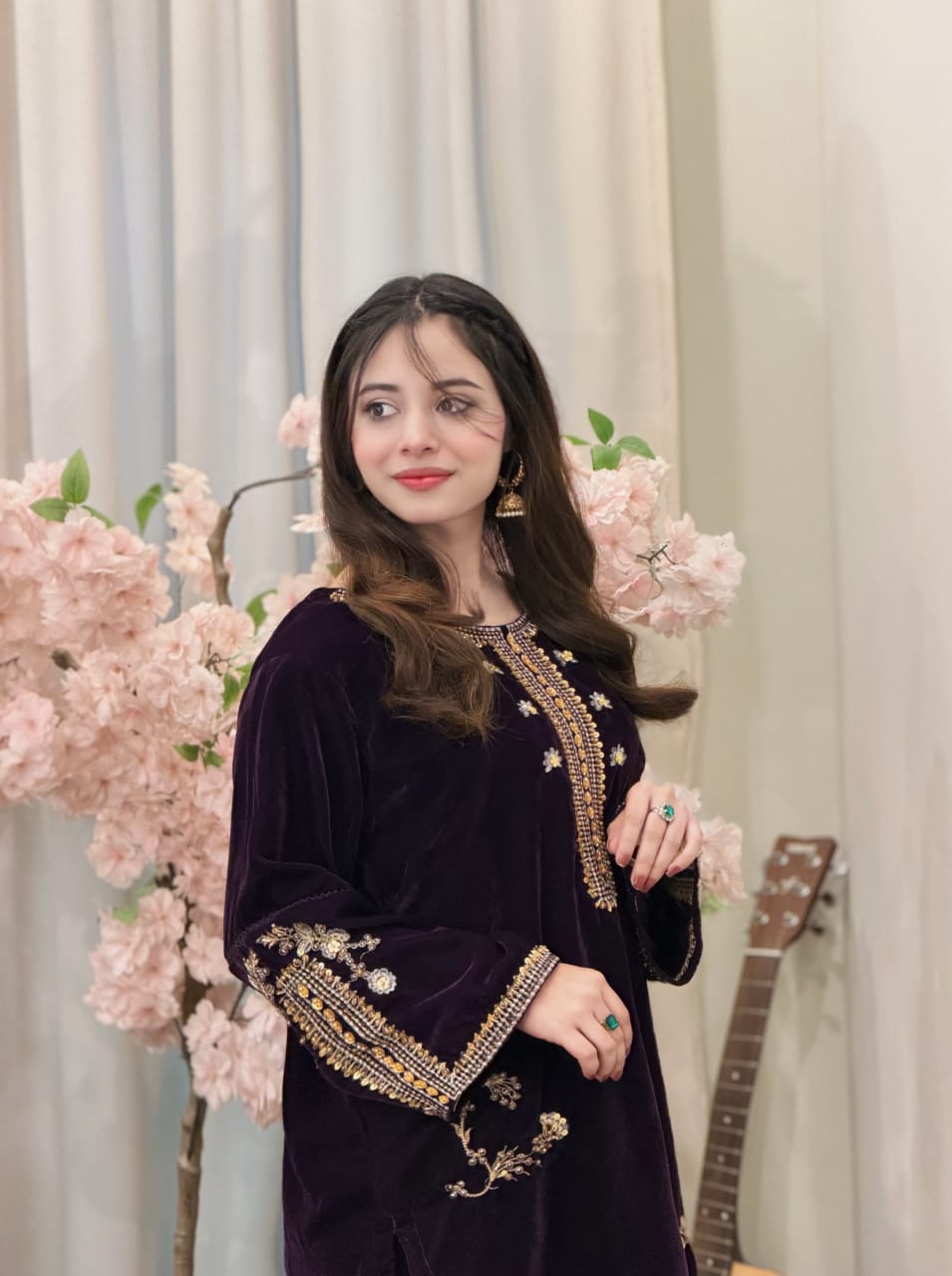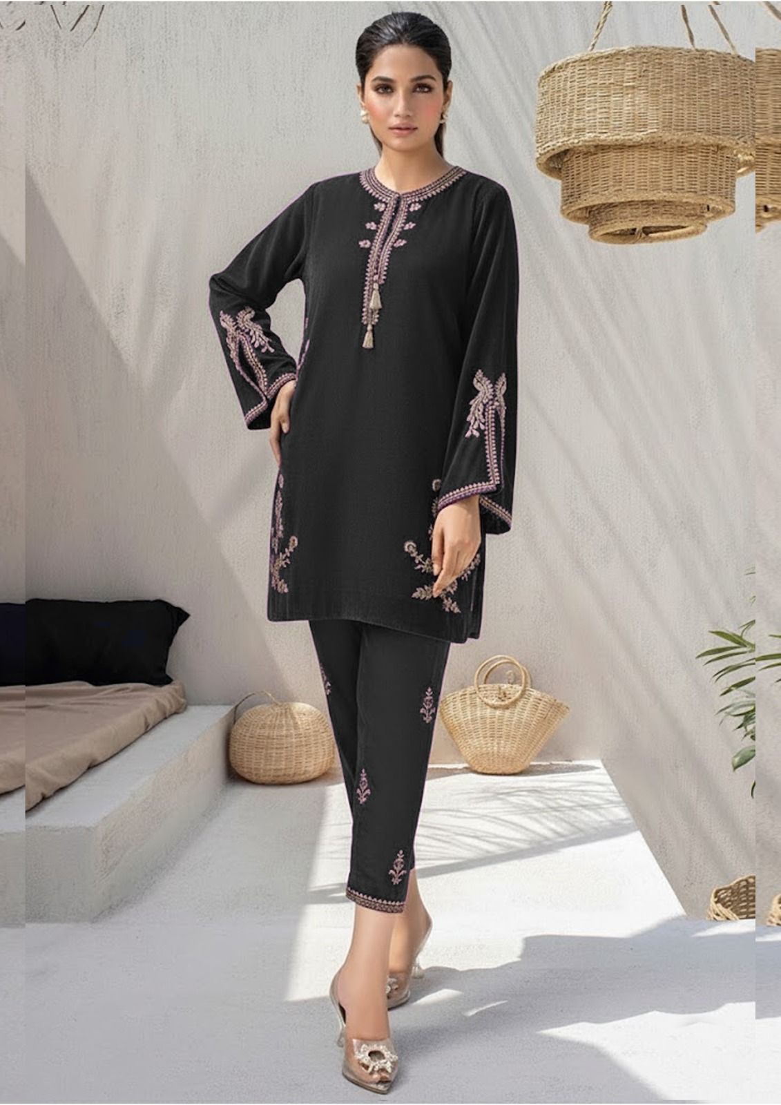 Indulge in timeless elegance with our Velvet Embroidered Pret Suit, designed to make a statement with understated luxury. Crafted from rich velvet fabric, this outfit features intricate gold embroidery on the neckline, sleeves, and hem, adding a regal charm to your winter wardrobe.